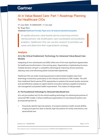 This Gartner report shows how AI accelerates the shift to value-based care, guiding CIOs on key challenges and AI priorities to improve outcomes, cut costs, and enhance experiences.